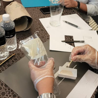 The workshop unfolded in two parts. In the first session, Art for Self-Care, participants personalised beer glasses using the delicate art of glass etching. As they worked, we encouraged them to reflect on the classic question: Is your glass half full or half empty? The answer we shared was a joyful reminder—your glass is always full (50% air + 50% water). This activity became more than just decoration; it was an exercise in positive thinking, creative exploration, and perseverance.